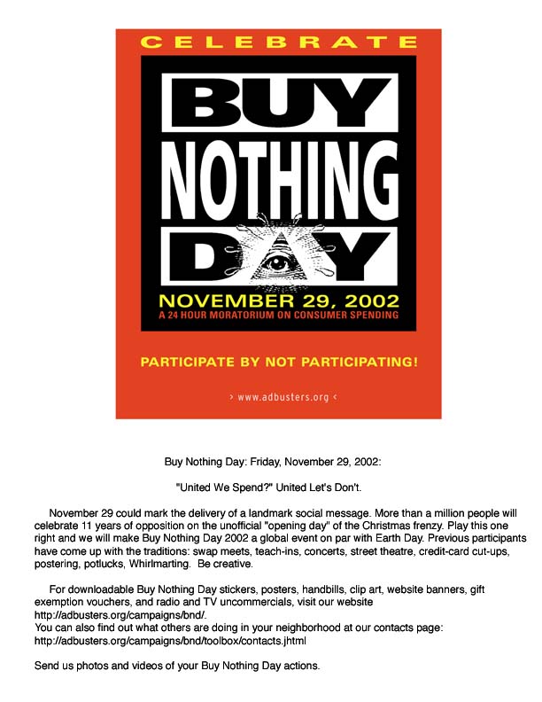 info on this years buy nothing day celebrations