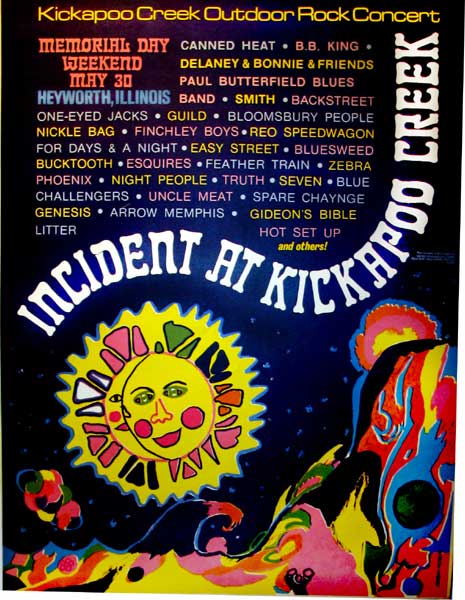 Featured acts included BB KING, CANNED HEAT, COUNTRY JOE & the FISH, BUTTERFIELD BLUES BAND, TED NUGENT and the AMBOY DUKES and 60 other bands including local bands REO SPEEDWAGON and the FINCHLEY BOYS.