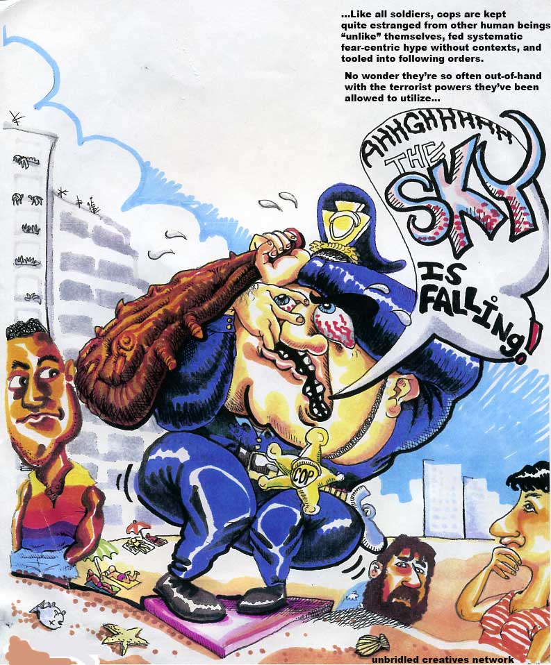 We step back and we see a military structure from "top" to "bottom"--the jargons keeping all the specialized implementers of policy separated, the reductions of what it is "to work", to be "professional", to be "responsible" and "mature", and so on. Others have and can articulate this much better than i. (2) For instance: