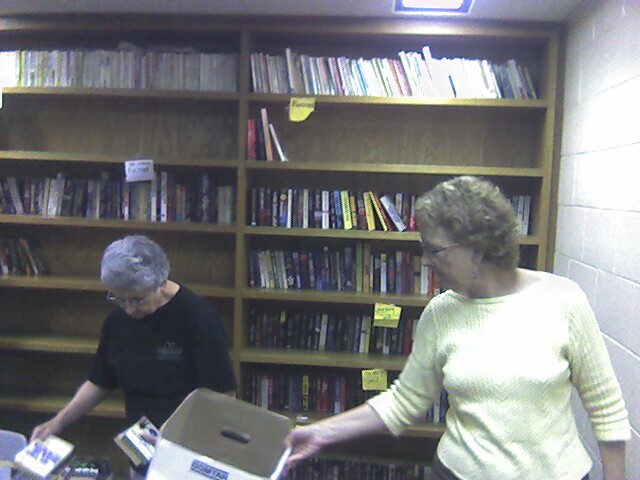 They had very little inventory and very cramped quarters in the backroom of the IMC space at 218 West Main in Urbana until Feburary 2005, when they were able to move into a room donated by the Illinois Disciples Foundation. It was still too small, but better. In March ’05, they held their first books sale, which is the current means of financing the project. Their first books came from book drives conducted by IMC volunteers and by some honor societies at the University of Illinois. They cleared about $1300 which has kept them afloat for postage and packing supplies. When the UC-IMC bought the historic Urbana Post Office, they moved into a former postal sorting room, lined with shelves -- that seems custom designed for the Books to Prisoners program.